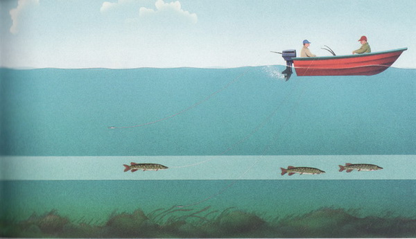 Троллинг – способ ловли щуки на водоеме, при котором используется лодка с мотором. Проводка приманки по воде осуществляется не путём подмотки лески, а именно за счёт движения судна. Чаще всего троллингом ловят осенью – в октябре и сентябре.