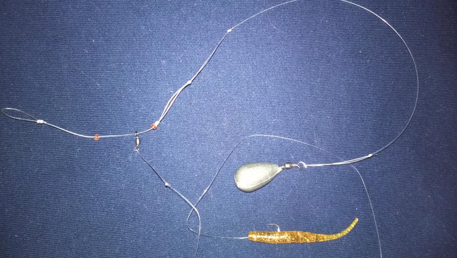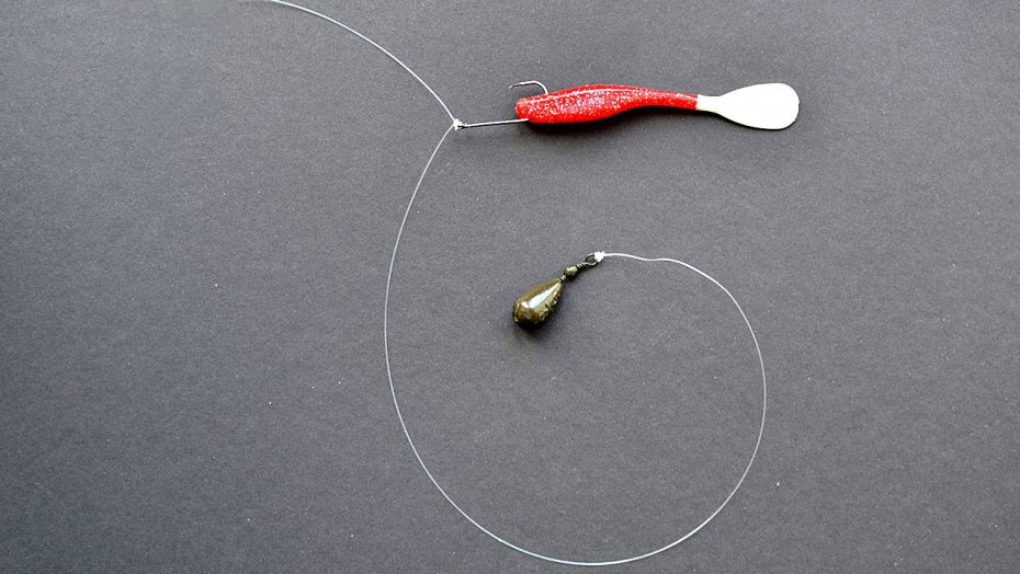 Подобный монтаж силиконовых приманок относится к категории простейшей оснастки. Главным ее отличием считается расположение крючка с насадкой и грузила на одной линии. На отводной поводок эффективно ловить судака и щуку, которые плавают вблизи поверхности дна. Монтаж оснастки не вызовет трудностей даже у новичка.