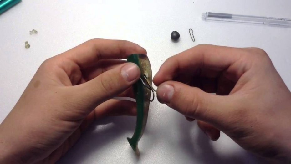 Представленный вариант оптимальный для ловли щуки, поскольку максимально сохраняет целостность «резины» и придает надежность оснастке.
