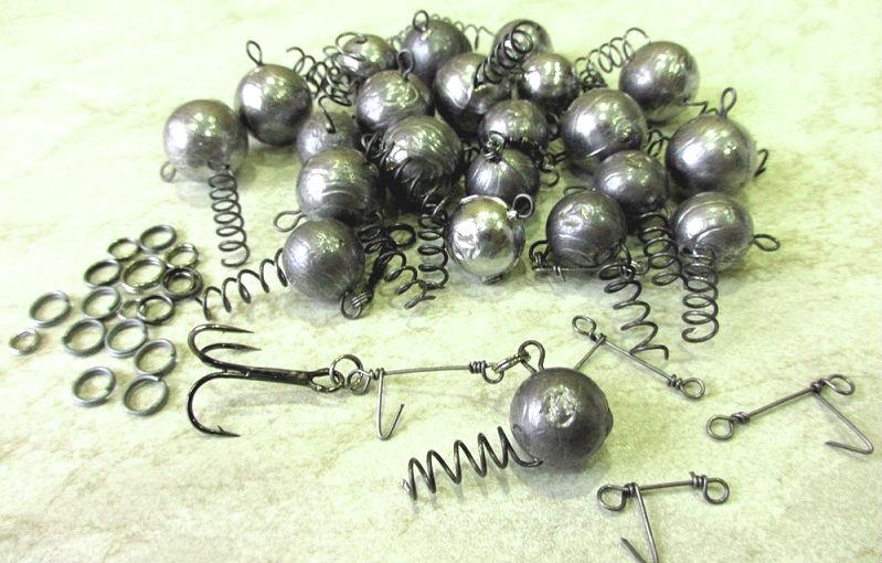 Для таких разнесенных поводковых оснасток как каролинская, техасская применяют грузила-пули весом от 10 до 16 г.