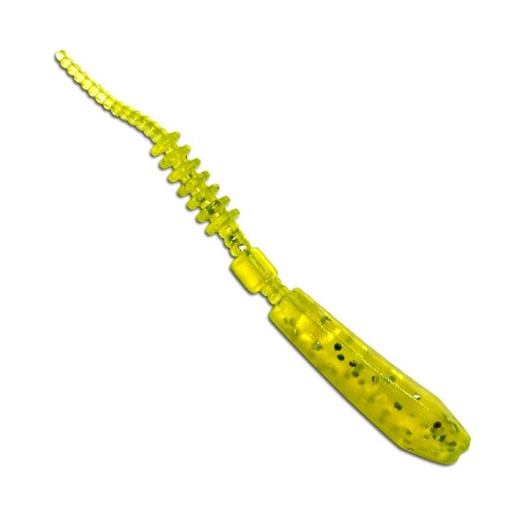 Напоминают по виду головастика или личинку, но с выраженным спиралевидным или изогнутым хвостом. В воде хвост твистера реагирует на любое движение среды, заставляя наживку совершать вполне естественные для рыбы вибрации и небольшие по амплитуде колебания.