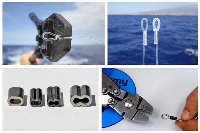 После этого происходит самозасечка. Леска при вязке просто пропускается в ушко или связки с застежкой, на которую затем прикрепляется клетка.