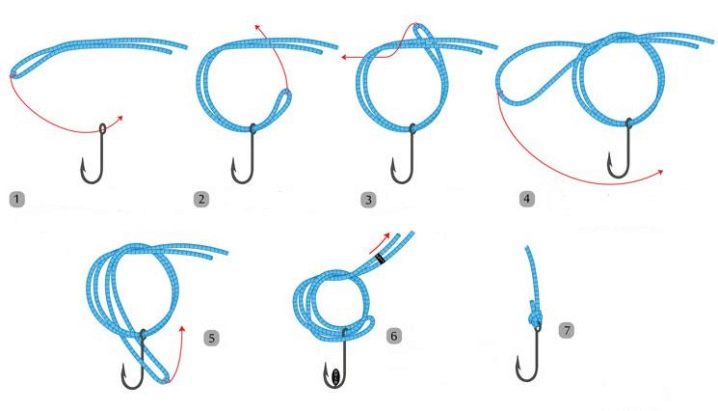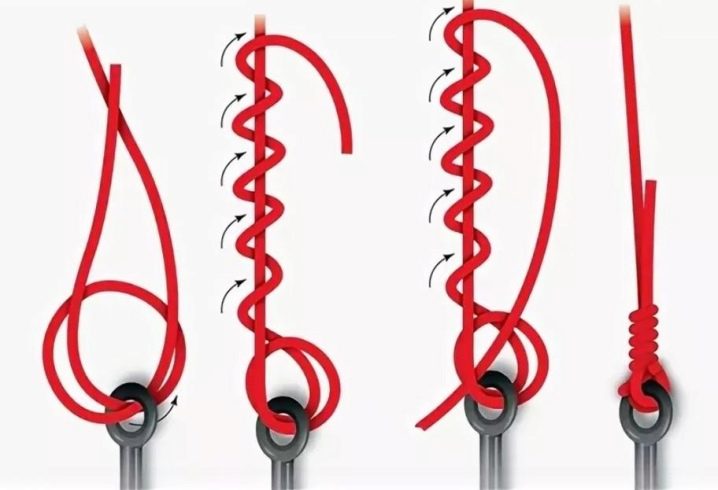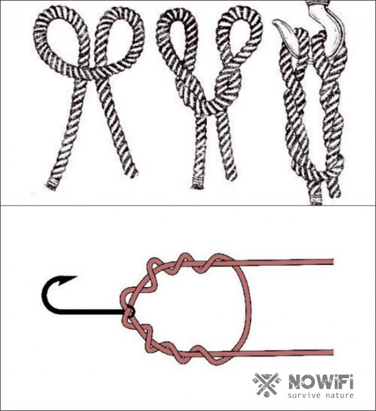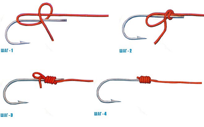 Помните – привязать крючок к леске таким образом получится, только если связке будет за что ухватиться. По своей природе подходит, как для плетенных, так и для синтетических нитей.
