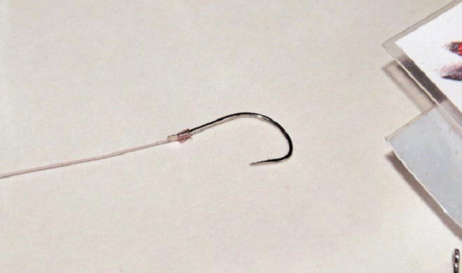Помимо того, что узел, связанный на цевье крючка, а не на колечке, обладает намного большей прочностью и надежностью, он обеспечивает наиболее правильное расположение крючка во время подсечки.
