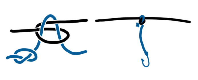 Рисунок 7. Варианты узлов для присоединения второго крючка