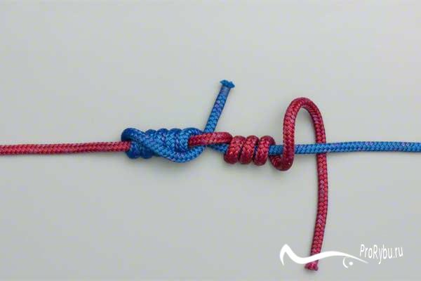 - сначала потребуется сформировать стопорный узел на основном шнуре;