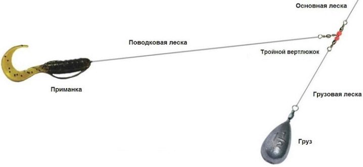 - Поводок привязывается на двадцать или тридцать сантиметров выше грузила (тут важно учесть, что отводной поводок должен быть перпендикулярен основной леске).