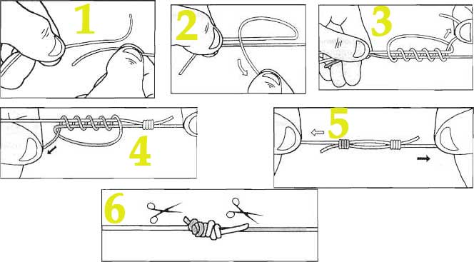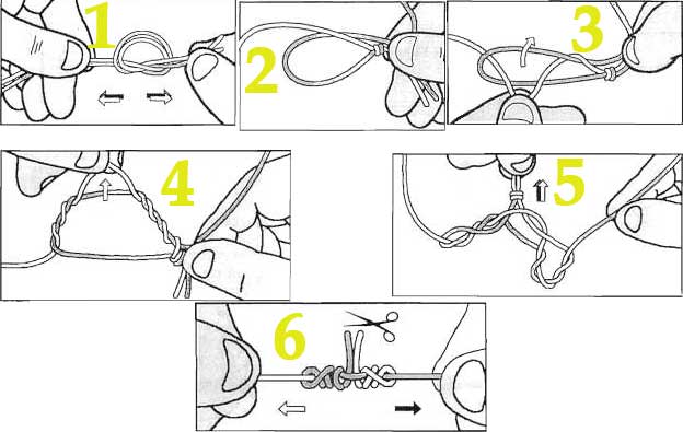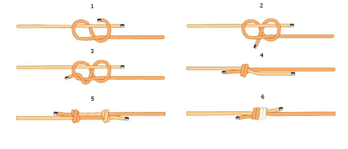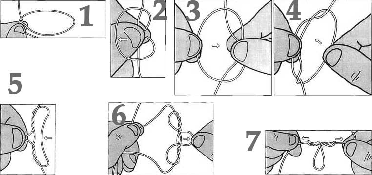 Давайте ближе к делу. Ниже представлен простой рыбацкий узел для соединения двух лесок, вернее пошаговая инструкция по его завязыванию: