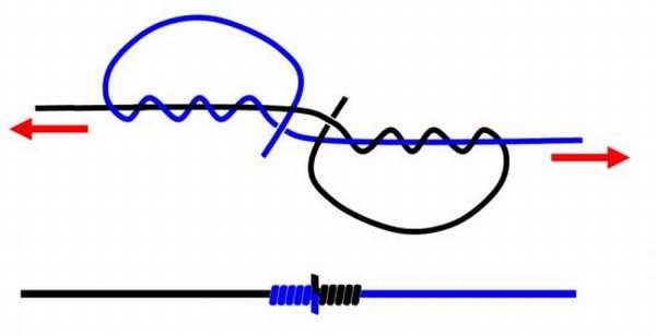 - Кровавая петля прекрасно подходит для нитей с разницей в диаметре 40%, при этом, что очень важно, сохраняется 91% грузоподъемности.