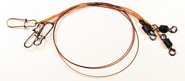 - Из поводочного материала – это большое количество стальных жилок, которые сплетены в тугую косичку и покрыты защитным слоем. Такие поводки мягкие, гибкие, хорошо «играют», от частых несущественных перегибов деформации нет, но при терке с корягой скрутятся в спираль. При многократном использовании жилки могут ломаться, выпадать из общей косички. Такой поводок уже не годится для использования, так как его грузоподъемность снижается сразу в два раза.