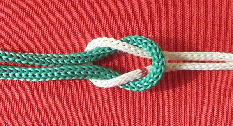 По завершении вязки у нас должен получиться обоюдный петельный узел («петля в петлю»), который ещё крепче соединяется от обычного натяжения.