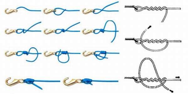 - Для привязывания бокового поводка. Особенностью данных узлов будет их нахождение непосредственно на самой нити.