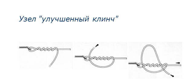 - «Клинч улучшенный» – тонких лесок (прочность 79%);