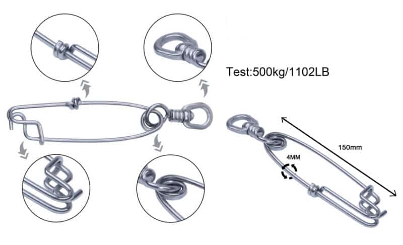 - Следует помнить, что установка вертлюжка на леску, будет более эффективна, если используется нить с большим диаметром, этот параметр снижает вероятность разрыва и деформации аксессуара.