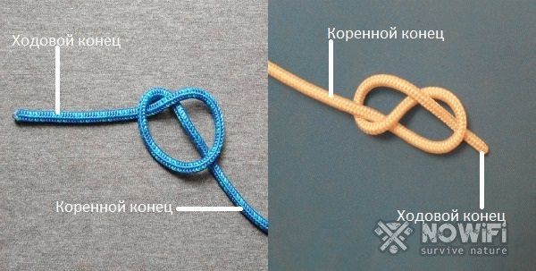 Ходовым концом называется незакрепленная часть троса, которой мы образовываем узел. Коренной конец представляет собой вторую часть троса, зафиксированную в неподвижном состоянии.