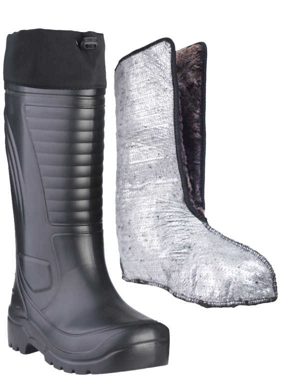 - Сапоги резиновые с утеплителем. Состоят из высокопрочного литого ботика. Голенище выполнено из неопрена, обладая отличной легкостью и эластичностью. Внутренность сделана из многослойного утеплителя и представляет собой вкладку, которая вынимается. Такие сапоги будут легче кроссовок и выдержат до -25 С. Идеальная обувь для длительных походов по лесу.