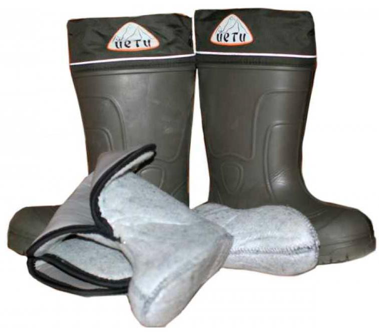 «Йети» СВ-75: изготовлены из ЭВА, средняя стоимость – 1,300.00 рублей. Хорошие амортизационные качества, многослойные утеплители, которые способны выдерживать температуру -60 С. Внешний материал сапог не деформируется под воздействием масел и растворителей. Манжета голени выполнена из водоотталкивающей ткани. Имеют облегченный вес, и средние показатели по параметру скольжения.