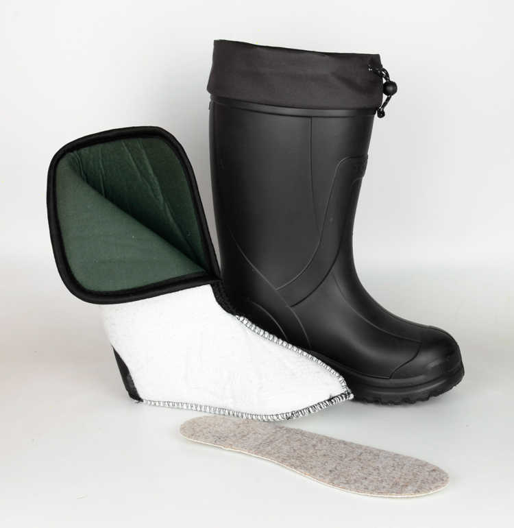 - Этиленвинилацетат . EVA – инновационный материал, главными достоинствами которого являются легкость и упругость. Также он обладает отменными изотермическими качествами и абсолютной водонепроницаемостью. Сапоги из этиленвинилацетата сохраняют эластичность в любую погоду, даже при очень низких температурах – до -50 градусов. Зимние модели выпускаются с многослойными утепляющими вкладышами, способными удерживать тепло и выводить испарения. Ловить в такой обуви – одно удовольствие.