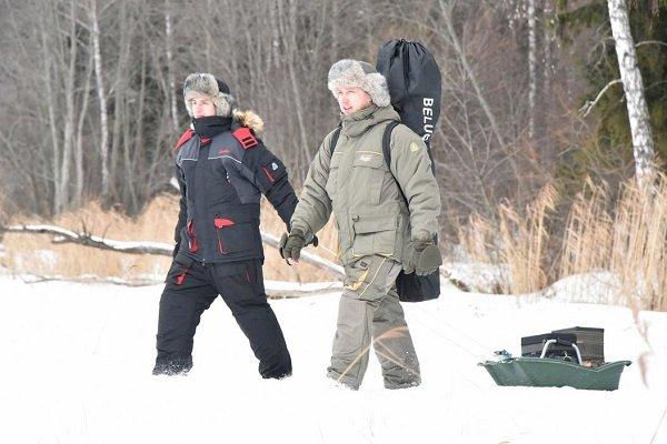 - Теплая одежда. Продумывать нужно все в мелочах, начиная от нижнего белья и заканчивая верхней одеждой. Лучший вариант – современная многослойная защита. Она состоит из термобелья, теплого белья из флиса, шерстяных вещей (например, свитера), верхнего зимнего рыболовного костюма. Конечно, фирменное снаряжение дорого, большинство рыболовов пользуются обычным комплектом – белье, свитера, поддевки, сверху прошитая флисом горка или ветронепродуваемый непромокаемый костюм, либо комбинезон. В сильные морозы – военные, охотничьи или строительные ватные штаны, куртки.